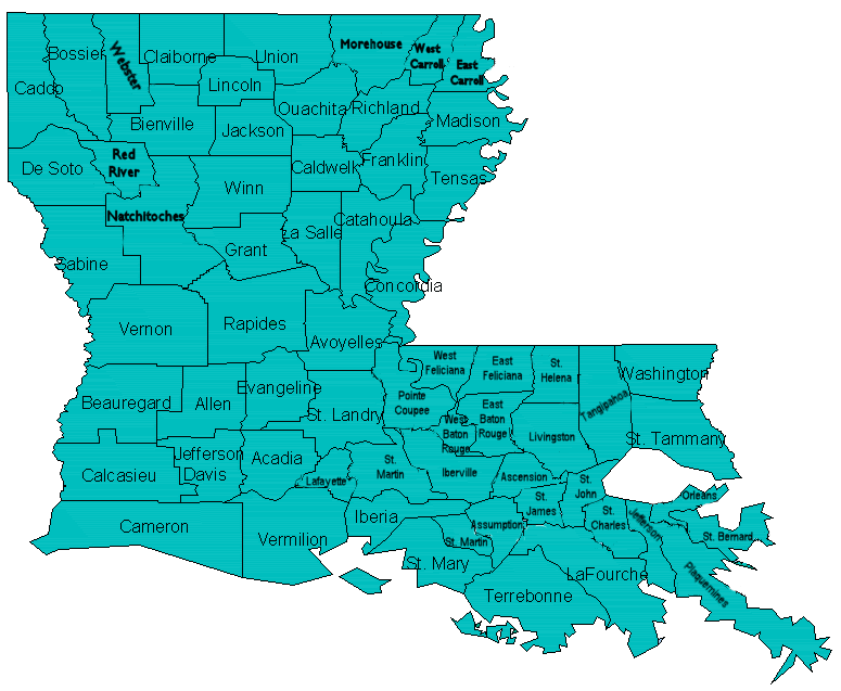 Parishes in louisiana map. Soto Wash glon st. They are easy-to-print and work well with almost any printer. Archdiocese of New Orleans map 1jpg 335 307. State of Louisiana is divided into 64 parishes French.