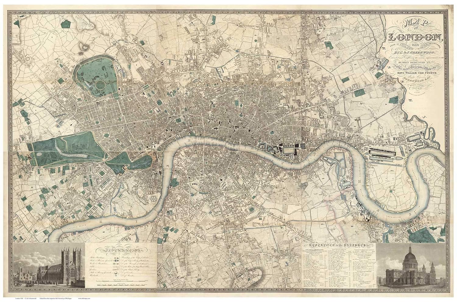Amazon Com London England 1826 Greenwood Old Map Reprint Handmade